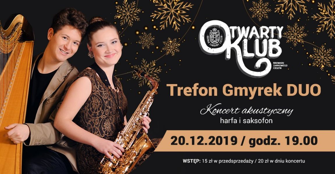 Zapraszamy na wyjątkowy, akustyczny koncert uznanego duetu saksofonowo-harfowego Trefon Gmyrek DUO! Duet wystąpi na scenie Otwarty Klub Browaru Zamkowego Cieszyn w piątek, 20 grudnia 2019 r. o godzinie 19.00.
