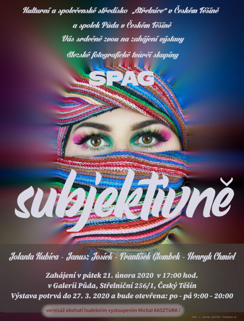 Serdecznie zapraszamy na pierwszą wielką wystawę międzynarodowej grupy fotografów SPAG (Silesian Photo Art Group) w Galerii Puda w Domu Kultury Strzelnica (KAAS Stelnice a Galerie Pda) w Czeskim Cieszynie (ul.Stelnini 254/1).