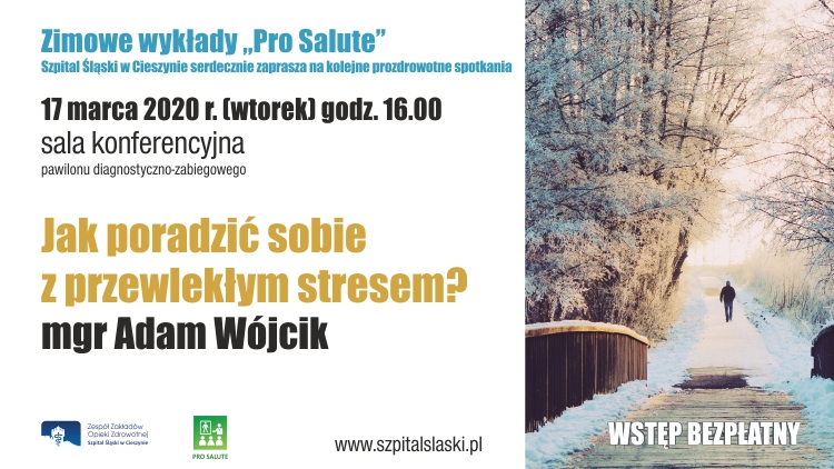 Stres staje się niemal nieodłącznym towarzyszem naszego życia. Na co dzień otacza nas wiele stresorów, przed którymi nie sposób uciec – praca, samotność czy problemy finansowe. Czasem stres może mobilizować do działania, ale niestety zdecydowanie częściej ma bardzo szkodliwy wpływ na nasze zdrowie. Szczególnie wtedy, kiedy stan napięcia utrzymuje się długo, a stres przejmuje nad nami kontrolę. Jak sobie więc z nim radzić? Jak rozpoznać, że organizm jest przeciążony z powodu stresu? O tym opowie psycholog mgr Adam Wójcik podczas marcowego spotkania „Pro Salute” w Szpitalu Śląskim w Cieszynie. Spotkanie odbędzie się tradycyjnie we wtorek 17 marca o godz. 16:00 na parterze w Pawilonie Diagnostyczno-Zabiegowym.