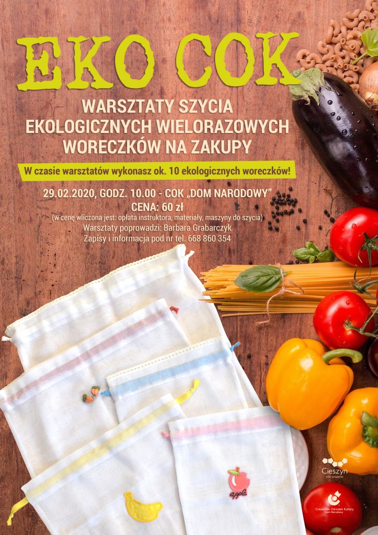 Jak jednocześnie żyć ekologicznie, ekonomicznie, modnie i praktycznie? Zrezygnuj z plastiku i zawsze miej przy sobie własnoręcznie wykonane, ekologiczne woreczki! Spróbuj, a przekonasz się w jak wielu sytuacjach mogą Ci się przydać! Cieszyński Ośrodek Kultury zaprasza na warsztaty z szycia ekologicznych, wielorazowych woreczków na zakupy! Warsztaty odbędą się w sobotę 29 lutego w Domu Narodowym w Cieszynie!
