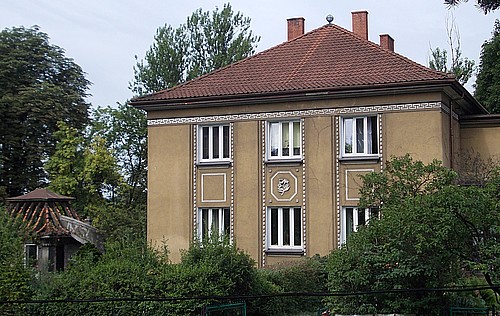 Budynek wraz z altaną i ogrodzeniem od strony Młynówki