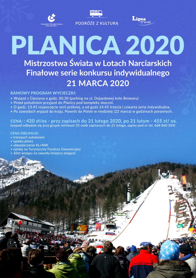Cieszyński Ośrodek Kultury „Dom Narodowy” – COK i Lipsa Travel Biuro Turystyczne zapraszają na kolejny wyjazd z cyklu Podróży z Kulturą. Tym razem mamy propozycję dla kibiców sportowych! Skokomania nie ustaje! W polskiej historii skoków narciarskich zaznaczył się już nie tylko Adam Małych, ale również jego następcy – Kamil Stoch, czy Dawid Kubacki, który w tym sezonie pobija kolejne rekordy miejsc zajmowanych na podium zawodów Pucharu Świata!