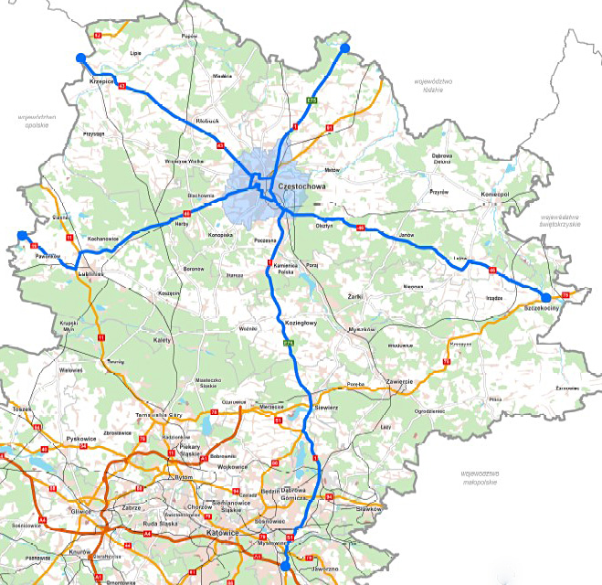 Zakaz obejmie obszar administracyjny Częstochowy oraz następujące odcinki dróg publicznych wykraczających poza ten obszar: