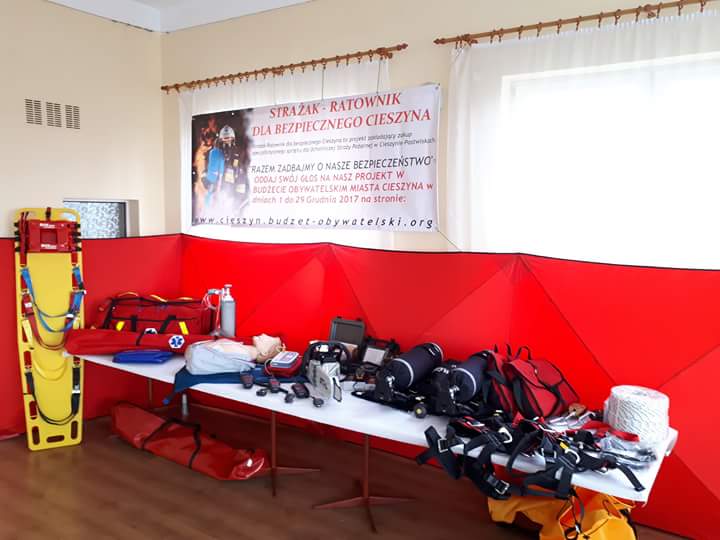 W ramach BUDŻETU OBYWATELSKIEGO, decyzją mieszkańców Cieszyna, zrealizowano projekt pn. „STRAŻAK – RATOWNIK DLA BEZPIECZNEGO CIESZYNA” - zakup specjalistycznego sprzętu dla jednostki Ochotniczej Straży Pożarnej w Cieszynie-Pastwiskach na łączną kwotę 49.858,23 zł.